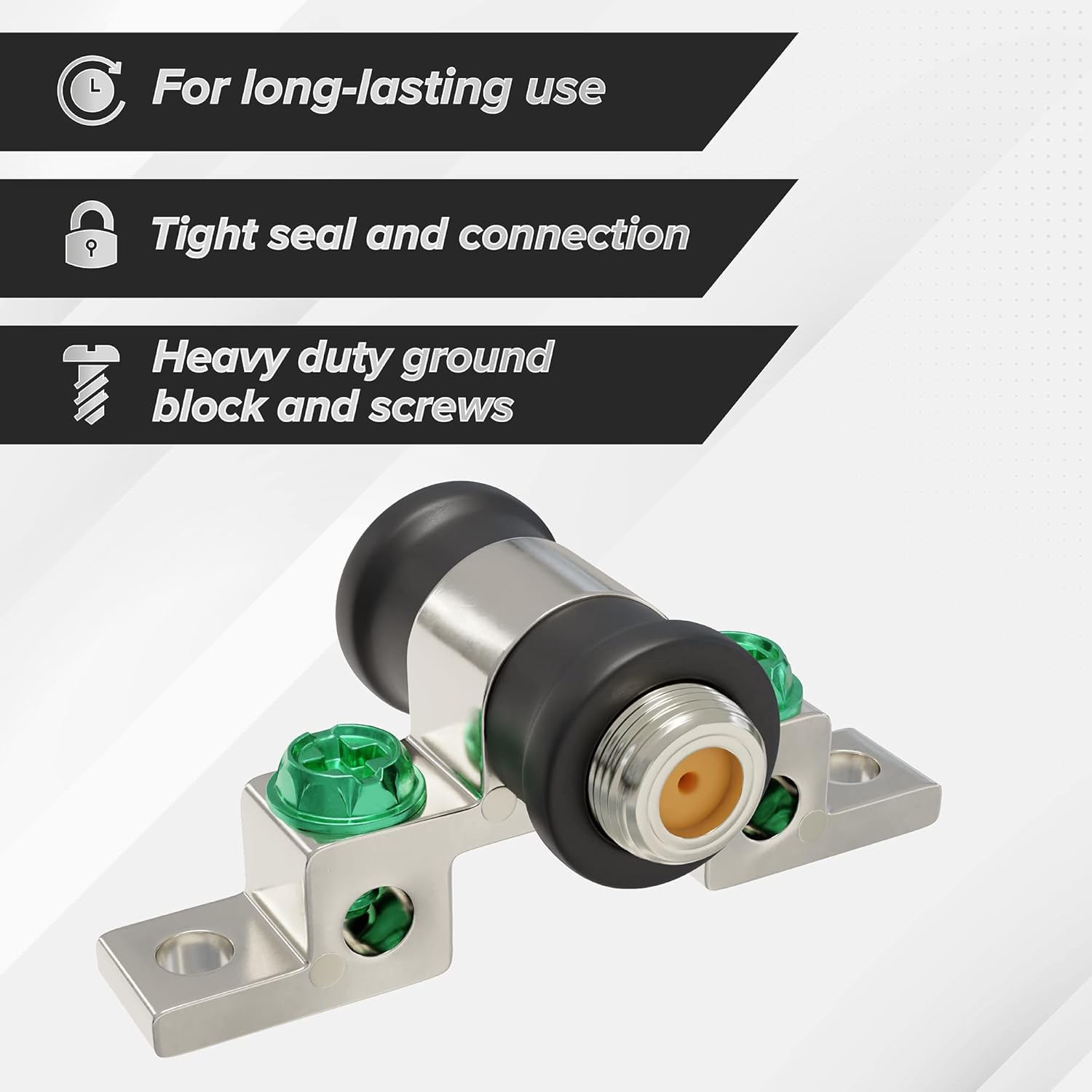 Each pack includes weather seals and mounting screws for quick installation. This grounding block reduces noise, static, and DC ground loops, ensuring long-lasting performance and a cleaner signal in any coaxial system.
